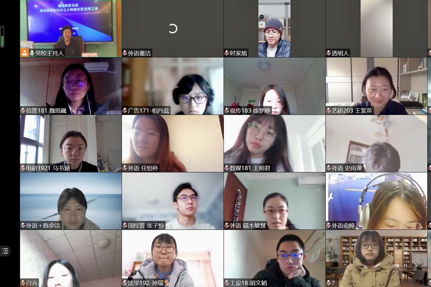 本次培訓班設有集中講座、網絡課程、討論交流、理論考試四個環節,共有來自15個學院的634名本科生、131名研究生參加培訓,培訓總時長為24學時。其中網絡課程圍繞“百年黨史”、“黨的基本知識”、“熱點聚焦”和“使命在肩,奮斗有我”四個專題設置,學員將通過黨員在線學習平臺和學習強國APP進行學習。各學院也將結合實際情況,發揮主觀能動性,對討論交流等環節進行設計和補充。本次寒假發展對象培訓班采用全線上的方式進行,但目標不改變,要求不降低,所有學員均須認真完成各項學習任務,及時提交思想匯報,確保培訓效果。