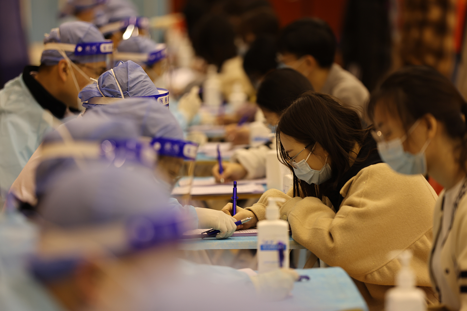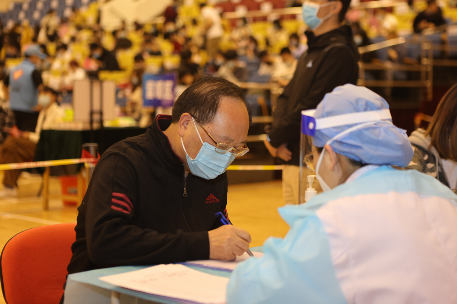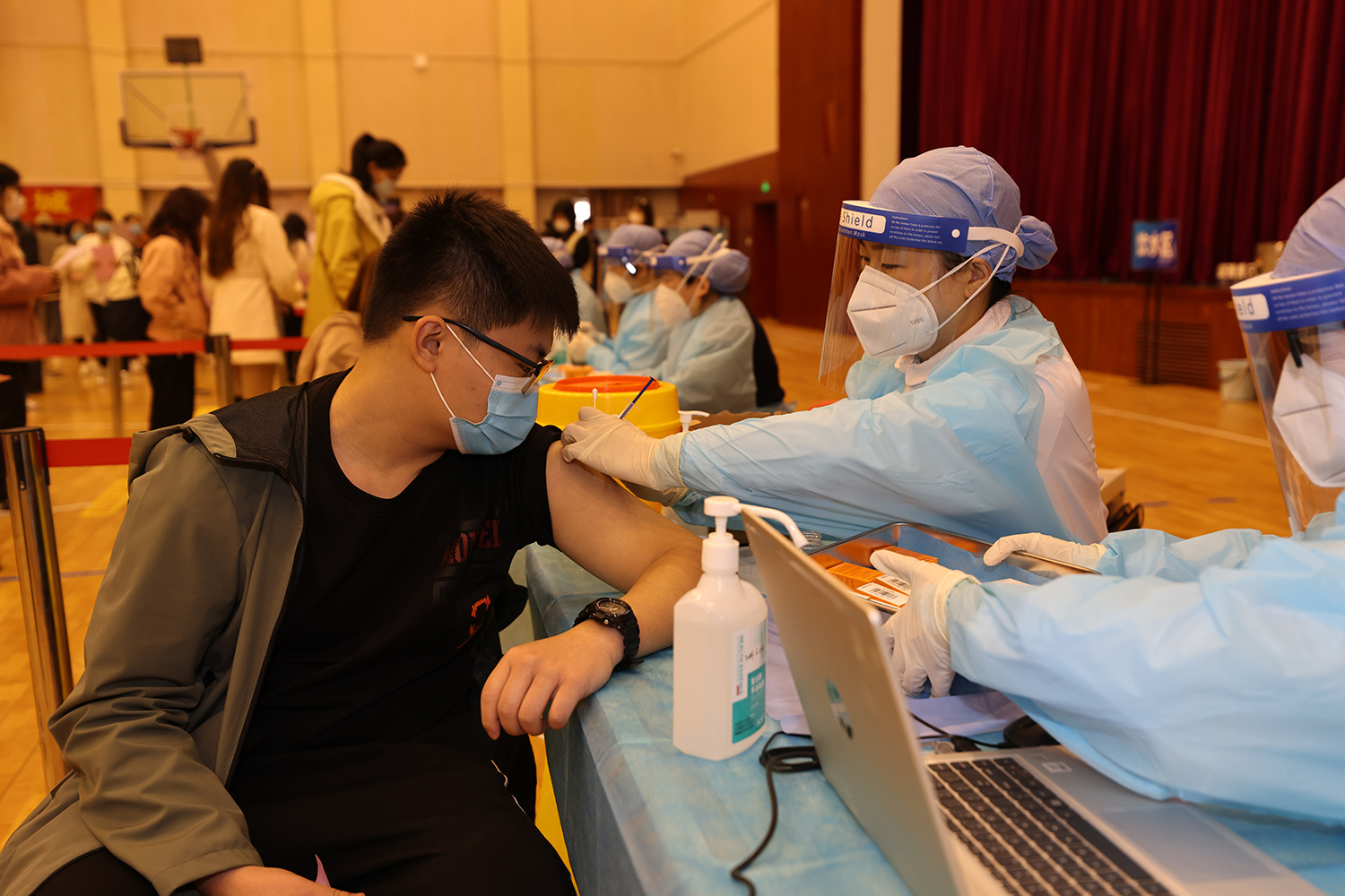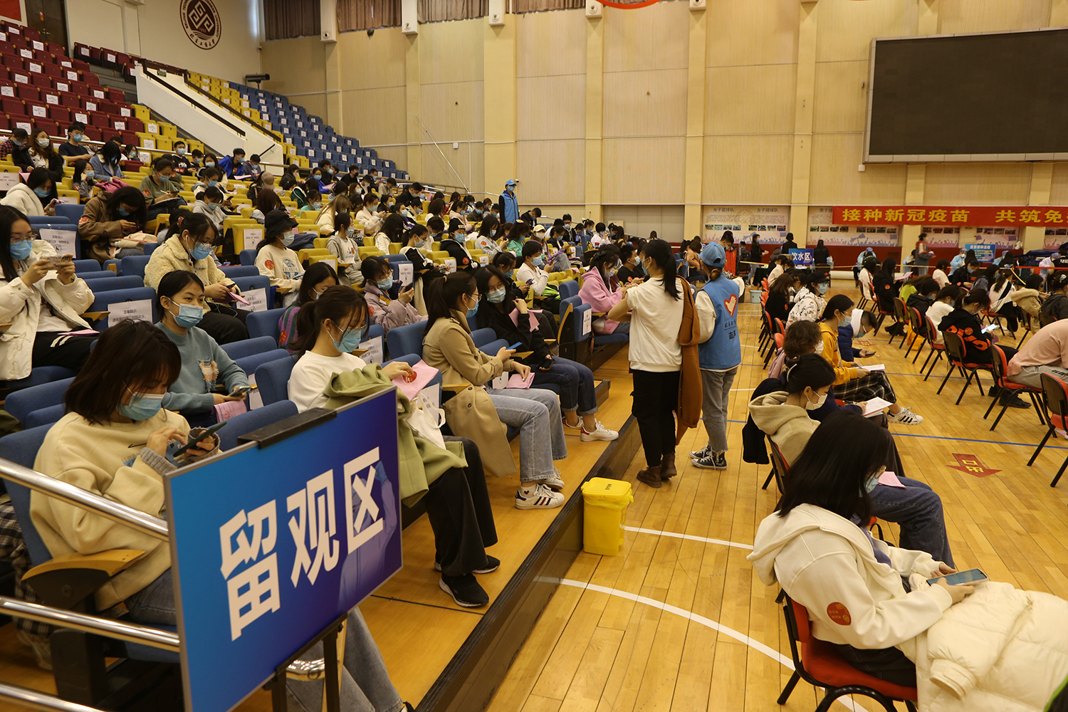 此次疫苗接種場地設置在良鄉校區文體館,設立5個分區、15個接種臺,醫務人員數量50人。通過科學規劃分區,等待、咨詢、登記、接種、留觀、離場 ,形成閉環管理,疫苗接種流程及防疫工作秩序井然、安全高效。210名志愿者們積極報名參與接種工作。接種日,志愿者們分4個時段上崗,每時段20人,全程為接種同學們提供貼心、細致服務。