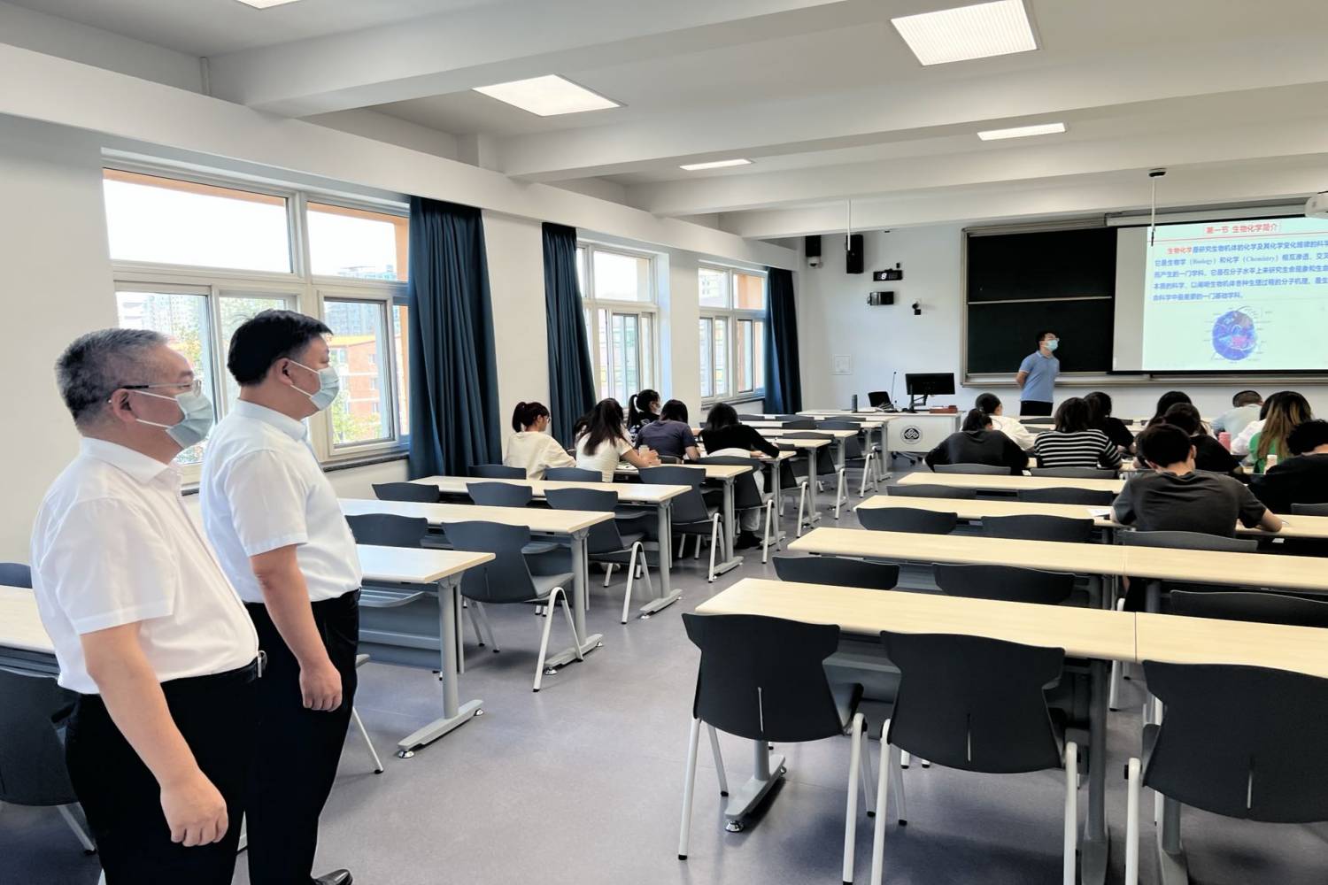 新生授課第一天秩序井然,各單位準備充分,后勤保障設施完備,全體任課教師均能提前到崗,精神飽滿、教學態度認真,課前準備充分。課堂上,授課教師親身引導學習,啟發思維,提問、討論,多維度互動并重,學生到課率高,認真聽講,課堂紀律良好,能積極參與課堂活動。開課第一天,線上及線下開課共計232門,授課教師282人,上課學生19118人次,教學效果良好。