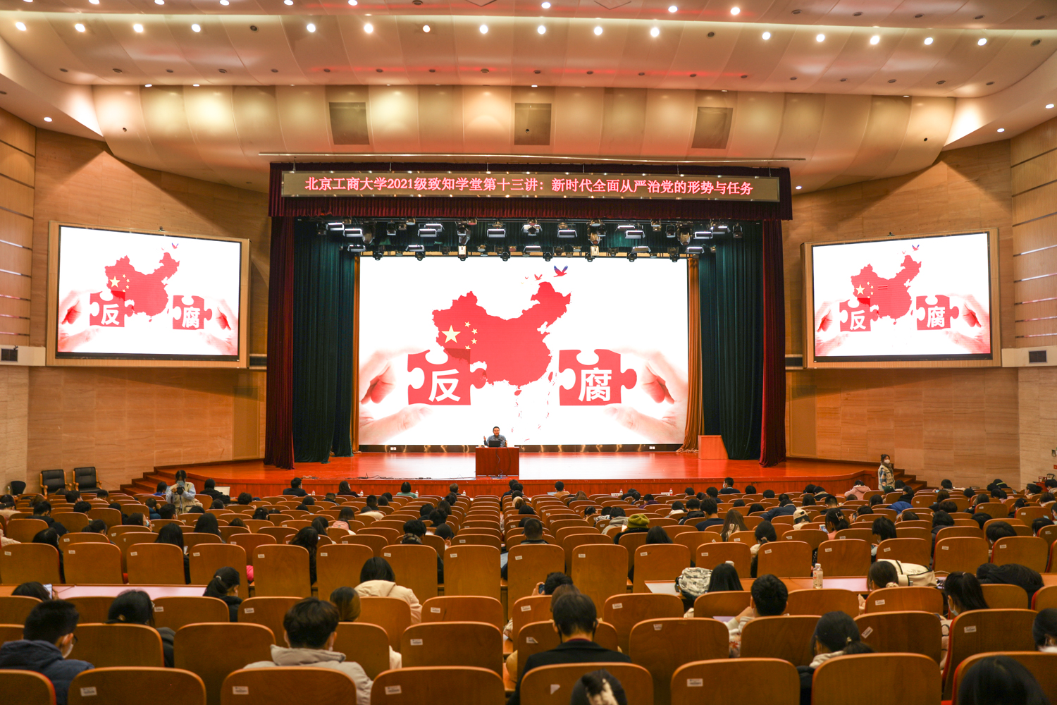 宋偉從黨的十八大以來黨中央全面從嚴(yán)治黨戰(zhàn)略布局講起,圍繞全面從嚴(yán)治黨的背景、十八大以來全面從嚴(yán)治黨的新成果、全面從嚴(yán)治黨的展望三個方面,闡釋了從嚴(yán)治黨對于建設(shè)廉潔高效的政府、帶動整個社會物質(zhì)和精神上繁榮進(jìn)步的重大意義。宋偉向同學(xué)們講述了習(xí)近平總書記“反四風(fēng)”的重要指示。他指出,能否風(fēng)清氣正、能否徹底遏制“節(jié)日腐敗”,關(guān)乎人民群眾對持續(xù)推進(jìn)全面從嚴(yán)治黨的信心與信任,關(guān)乎黨的十九大后持續(xù)深入抓作風(fēng)建設(shè)能否開好局、起好步。他強(qiáng)調(diào),腐敗和反腐敗不是抽象的概念,大學(xué)生村官和青年貪官也不在少數(shù),這是和大家的生活、工作以及未來發(fā)展緊密相關(guān)的。我們心中應(yīng)種下一顆廉潔的種子,才能更好服務(wù)于未來職業(yè)方面以及各方面發(fā)展。宋偉通過講述老撾的反腐情況,闡明了各個國家由于國情存在差異、反腐措施也不盡相同的規(guī)律。他舉例,絕大多數(shù)國家把行賄認(rèn)定為腐敗行為,而老撾?yún)s持相反意見,認(rèn)為貪污和挪用公款才算腐敗,這是宗教信仰差異導(dǎo)致的觀念差異。