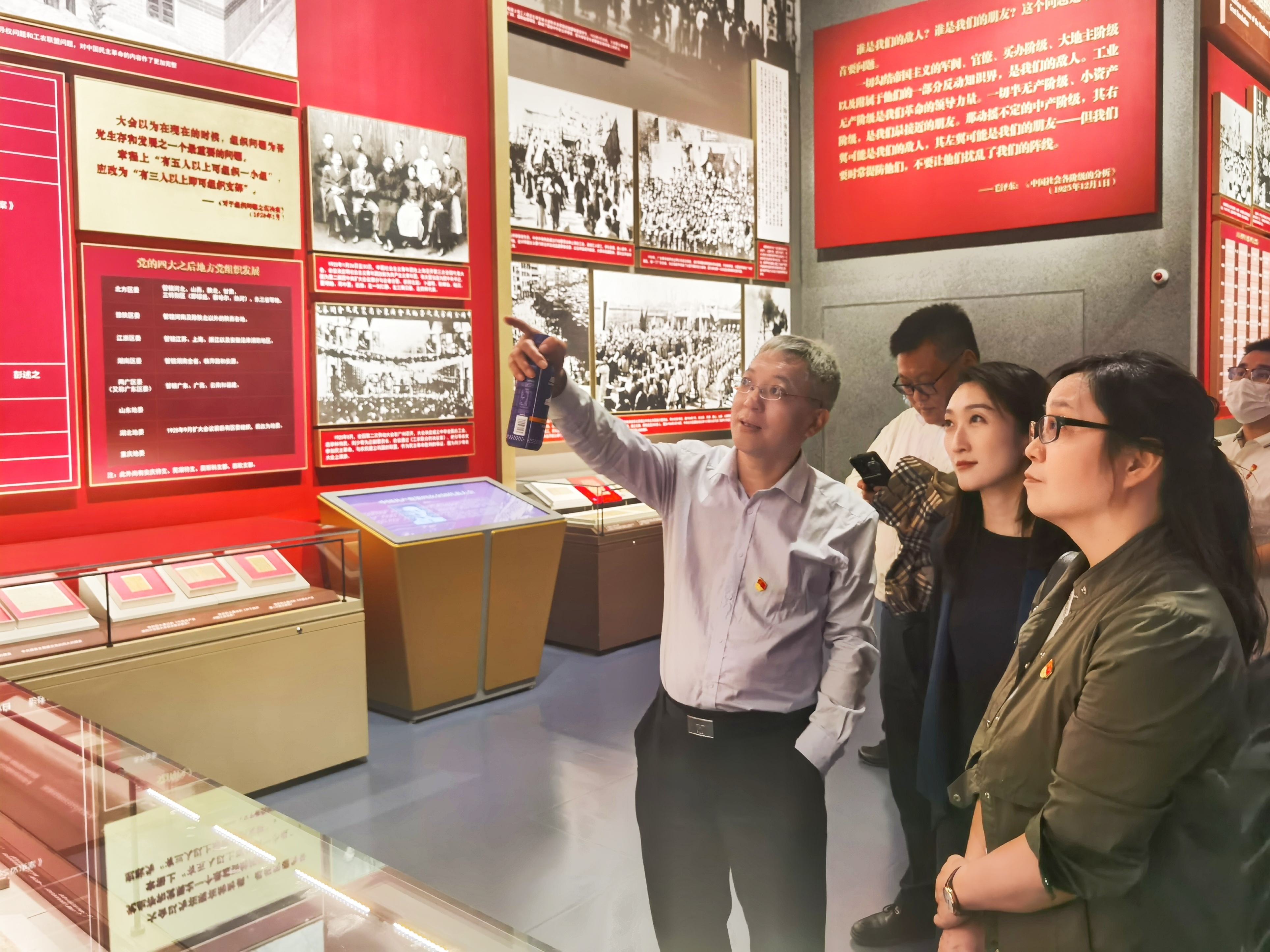 5月10日下午,馬克思主義學院組織習近平新時代中國特色社會主義思想概論課和毛澤東思想和中國特色社會主義理論體系概論課近百名學生赴中國共產黨歷史展覽館開展課程實踐教學活動。學校黨委副書記李中奇、馬克思主義學院黨政領導與師生一起全程參觀。師生們共同參觀了“不忘初心、牢記使命”大型主題展覽。展覽共分為四大部分,通過一幅幅圖片、一件件文物實物,全方位展現了中國共產黨百年奮斗所取得的偉大歷史成就。參觀過程中,大家認真觀看,不時駐足凝望、交流探討,在珍貴的歷史文物、檔案資料、影音圖片及復原場景中,共同重溫中國共產黨波瀾壯闊、蕩氣回腸的百年歷史,感悟中國共產黨人篳路藍縷、艱苦奮斗的征程。本次課程實踐教學活動,師生共同重溫了中國共產黨從“一艘小小紅船”到領航中國行穩致遠的“巍巍巨輪”的偉大征程,對“中國共產黨為什么能”“馬克思主義為什么行”“中國特色社會主義為什么好”有了更加深刻清晰的認識。情境教學法的運用進一步培養學生的大歷史觀,提升了學生對馬克思主義中國化時代化理論成果,特別是對于習近平新時代中國特色社會主義思想的理解,展示了新時代思想政治理論課實踐教學的魅力。同學們紛紛表示,在此次實踐活動中有體會、有感受、有收獲。