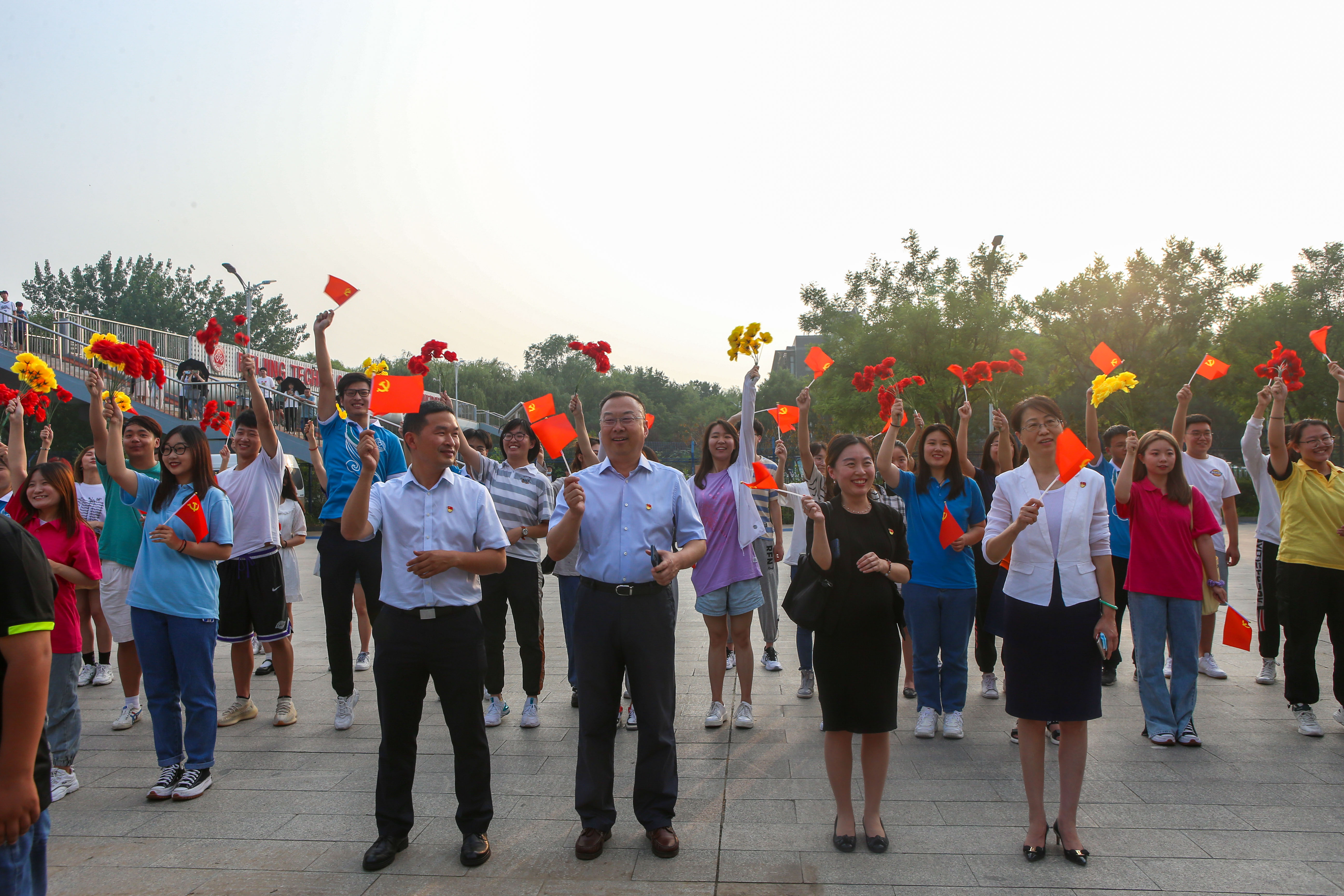 “唱支山歌給黨聽,我把黨來比母親……”6月28日下午,學校良鄉主校區傳出了一陣陣悠揚而又動人的歌聲。數百名同學伴著悠揚的音樂,揮舞著手中的黨旗和花朵,洋溢著青春活力在圖書館廣場激情高歌?!皧^進百年路,啟航新征程”北工商團員青年唱響百年頌歌主題教育“快閃”正在上演。學校黨委副書記李中奇出席活動。相關職能部門負責人與同學們一起,用歌聲唱響黨的百年頌歌。