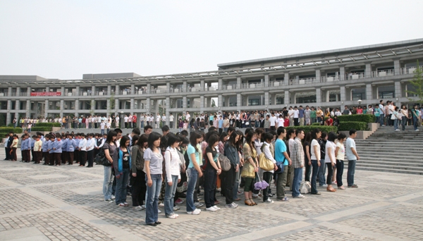 為表達對四川汶川大地震遇難同胞的深切哀悼, 5月19日14時28分起,全校師生面向西南默哀3分鐘,同時校車隊汽車鳴笛,校防空警報鳴響。