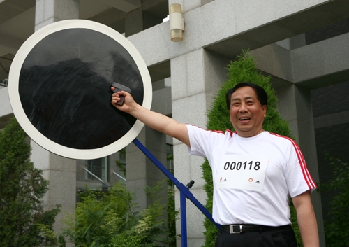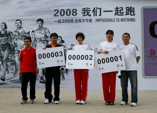 跑步結束后,同學們紛紛來到廣場,領取自己的號碼牌并留下了自己的寄語:“中國堅持,勝利在望”、“如果有什么可以讓我最感動,那必定是中國的崛起和奧運的成功”、“祝福北京奧運,祝福我的祖國”。