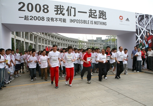 16點30分,隨著北京市教委副主任杜松澎發出的一聲槍響,中國奧委會市場開發部部長馬繼龍、學校黨委書記孫堯東、黨委副書記盧思鋒和奧運會女排冠軍隊成員宋妮娜、張萍、羽毛球世界冠軍董炯一起,帶領來自首都各大高校的2008名學生共同在校園中,開始了