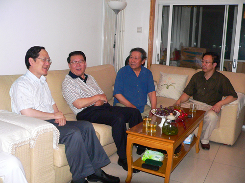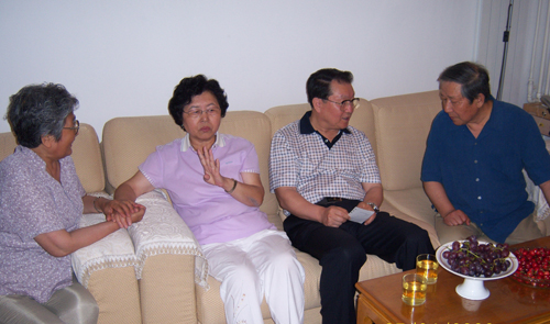 李長春同志(右二)看望慰問昔日同事虞廼符(左一)夫婦
