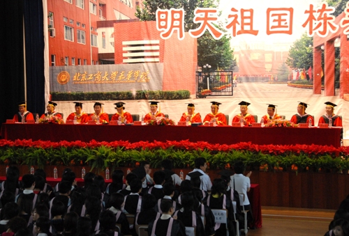 6月24日,嘉華學院籃球館內國歌奏響,第一屆畢業生在這里隆重集會,舉行畢業典禮暨學位授予儀式。北京工商大學校長譚向勇,嘉華學院董事長沈愉,北京佳成遠景投資有限公司董事長李艾倫,北京工商大學副校長、嘉華學院院長張耘,嘉華學院執行院長嚴旭陽、黨總支書記李武、副院長韓效宥、劉增玉,基礎部主任王亮濤、金融與貿易系主任秦成林、語言與傳播系主任王德杰、財務與管理系主任李會太等有關領導出席典禮,并向畢業生頒發畢業證書和學位證書。典禮由北京工商大學副校長、嘉華學院院長張耘同志主持。