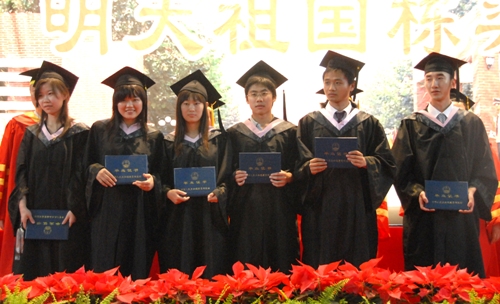 譚向勇、沈愉、李艾倫分別為優秀畢業生、通過碩士研究生入學考試的同學和支邊西部地區的同學頒發了畢業證、學位證和榮譽證書。