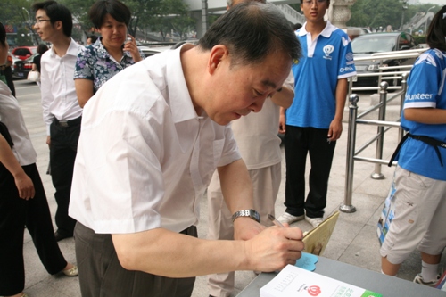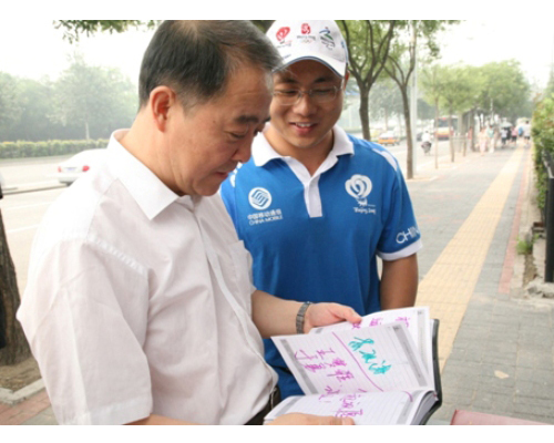 在每個站點,孫書記囑咐大家要以飽滿的熱情服務奧運,同時要保重身體,注意降暑降溫。在中央電視塔站點,孫書記詳細詢問了服務情況并仔細地翻看了留言簿;在城鄉(xiāng)貿易中心站點,孫書記和信息與工程學院的領導和所有城市志愿者合影留念;在翠微大廈服務站點,孫書記還應志愿者邀請寫下了“服務奧運,展示青春”的留言;在永定路站點,孫書記還就志愿者的服務情況、后勤保障等問題詳細詢問了海淀團區(qū)委和街道的負責同志。