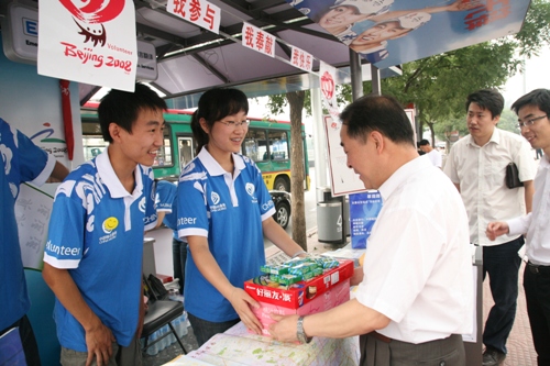 從7月1日到9月20日,我校將有1200多名志愿者在海淀區(qū)的7個站點進行志愿服務。到目前為止,各個站點運行正常并各有特色。其中城鄉(xiāng)貿易中心服務站點被海淀團區(qū)委評為“五星級”服務站點(全區(qū)120個站點共評出10個)。