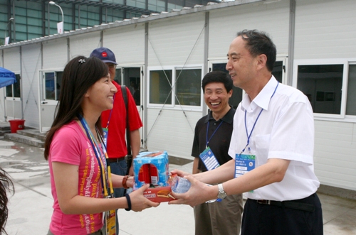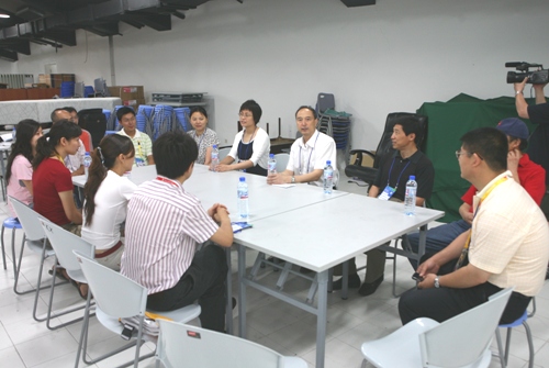 盧思鋒一行隨后來到國家會議中心擊劍館,慰問在這里服務的物流實習生王靜、王曉宇。北京奧組委人事部副部長、國家會議中心擊劍館服務副主任金華省接待并陪同慰問。
