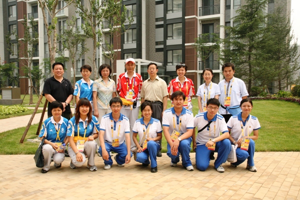 最后,雖然時間已過中午,孫寶國一行又來到我校奧運村服務生所服務的運動員居住區,看望了已經在這里工作一個月的帶隊領導和輔導員老師們,并應港中旅酒店集團奧運服務團隊執行副總經理溫平、我校奧運村服務生領隊董竹娟邀請參觀了運動員居住區。