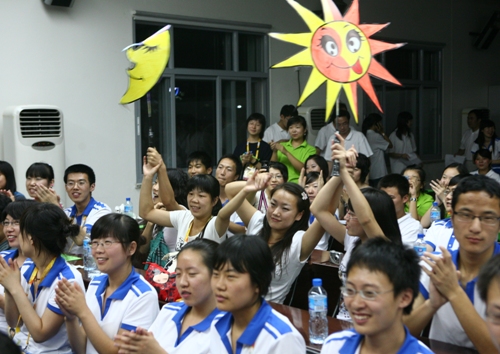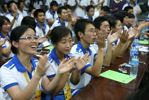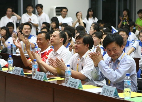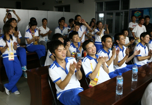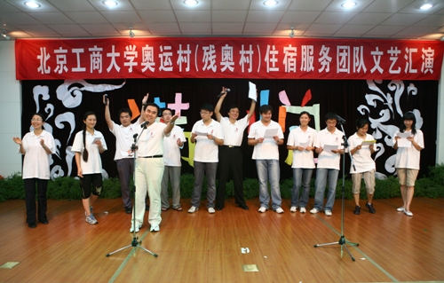 7月25日,是我校奧運村服務生團隊進村“滿月”的紀念日,隊員們舉辦了一場別開生面的文藝晚會,各分隊都準備了豐富多采的文藝節目,表達了服務奧運、奉獻奧運的決心、信心和熱情。學校黨委副書記盧思鋒,奧運村(殘奧村)住宿服務團隊常務副總經理、北京市教委委員孫善學,港中旅集團副總經理、北方區總經理王樹森,奧運村(殘奧村)住宿服務團隊執行副總經理溫平,運動員村執行副總經理段翔,北京高校奧運村(殘奧村)住宿服務團隊辦公室主任張玉華出席晚會并為同學們加油!