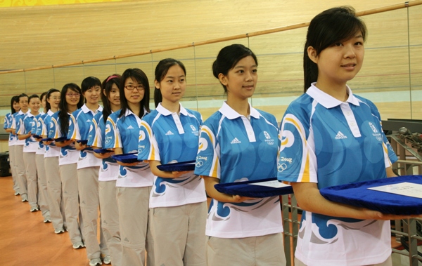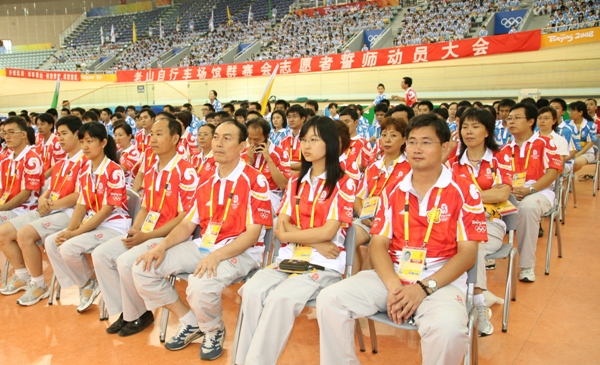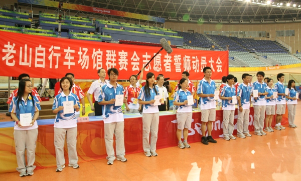 我校是老山自行車場館群志愿者工作的主責對接高校,我校志愿者與其他來源單位志愿者共1269人組成了老山自行車場館群的奧運賽會志愿者隊伍,承擔奧運會小輪車、場地自行車、山地車比賽的志愿服務。他們將在觀眾服務、頒獎儀式等30個業務口奉獻他們的熱情、展現他們的風采。本次誓師大會之后,我校志愿者將正式進入賽時沖鋒階段。此前,場館和學校先后多次對志愿者進行了通用知識培訓和業務整合培訓。7月27日志愿者全部上崗后,全體志愿者接受了針對性更強的集中場館培訓和崗位培訓,部分業務口志愿者參加了綜合演練和場景模擬訓練,實現了深度整合。志愿者已調整好了自己,進入臨賽狀態。