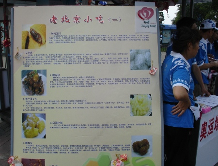 “了解北京要從了解北京風土人情開始,要從了解北京的小吃開始。我們想通過這樣的方式讓更多的人了解中國,讓世界共同‘品嘗’中國的味道,共同感受北京人的熱情。”金域大廈站點的一位志愿者興奮的談著他們開展這項活動的初衷。我校化工學院金域大廈站點的志愿者們集思廣益,結合專業特色,推出獨特的老北京美食咨詢服務。志愿者們利用休息時間制作了精美的展板,驢打滾兒、面茶,糖耳朵……詳實的注解配上精美的彩圖,不時引來外地來京游客的駐足。