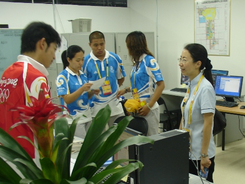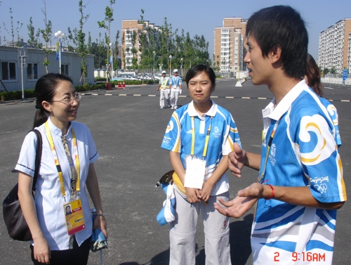 這次看望是北京工商大學奧運村臨時黨支部、臨時團支部成立后的一次交流活動,老師們先后走訪了我校志愿者負責的所有業務口,其中包括歡迎中心、訪客中心和交通指揮中心在內的8個室內區域,1號門、運動員班車站在內的3個室外區域。每到一個崗位,臨時黨支部、團支部的各位老師與志愿者們親切交談,仔細詢問工作職責、范圍以及后勤保障情況,并與業務口經理進行了積極的溝通和交流。老師們充分肯定大家前一階段的工作成績,希望大家繼續積極工作、熱情服務、加強交流、體現風采,同時要做好總結、體會收獲。志愿者們看到學校老師十分高興,建議今后能夠多開展志愿者和服務生之間的交流活動,相互取經,共同進步。同時也表示有信心出色完成志愿工作任務,并希望老師們能夠保重身體。