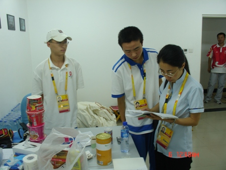 夜班服務生們既要承擔維保公共區域、值門頭等任務,又要經常忍受蚊蟲叮咬,長期睡眠不足的煎熬,不少同學都生出了黑黑的眼圈,身體抵抗力也減弱不少。6日凌晨,A3分團的夜班服務生王子名, 嗓子嚴重發炎,說話都十分費力,但他在簡單吃過藥后還是毅然決定帶病上班。劇烈的疼痛使他無法用用言語向國際友人問候致意,但標準的引導手勢、鞠躬禮節卻無聲地傳遞了住宿服務生的過硬的業務素質和中國人熱情好客的優良品德。