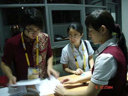 奧運盛會開幕在即,我校夜班服務生繼續保持昂揚斗志、堅守崗位確保奧運住宿工作正常運行。