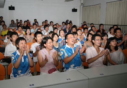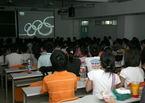 為了確保暑期留校學(xué)生、志愿者以及因工作需要堅(jiān)守在工作崗位上的師生員工能夠及時(shí)收看奧運(yùn)會(huì)開(kāi)幕式電視轉(zhuǎn)播,8月8日,我校阜成路東、西校區(qū)共開(kāi)放十間教室,同步轉(zhuǎn)播奧運(yùn)開(kāi)幕式,觀賽學(xué)生、教職工人數(shù)將近2000人。