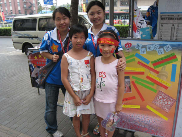 在這段服務(wù)奧運(yùn)的日子里,身為志愿者的我們感受到了太多的關(guān)愛與支持!時(shí)常會(huì)有路人把自己的地圖送給我們的站點(diǎn),方便我們?yōu)楦嗟挠讶朔?wù);時(shí)常會(huì)有住在附近的朋友每天下班后都過來與我們聊天,幫我們一起解決問題;更忘不了年過7旬的老爺爺過來和我們一起唱《朋友》,也忘不了可愛的小朋友每天在公交車站等車時(shí)都來我們站點(diǎn)的愛心貼板上留言,還有為我們提供幫助的同學(xué)——把自己唯一一套央視國(guó)際的轉(zhuǎn)播計(jì)劃和場(chǎng)館地圖等送給了我們服務(wù)的站點(diǎn)等等等等。