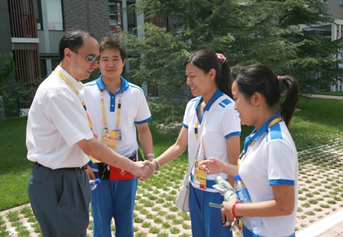 8月16日,奧運賽程已經(jīng)過半,我校黨委副書記、校奧運籌辦與賽時保障指揮部常務(wù)副總指揮盧思鋒代表學校領(lǐng)導,赴奧運村看望了我校志愿者。團委書記呂素香、志愿者領(lǐng)隊文四英老師陪同并介紹我校志愿者的工作狀況。