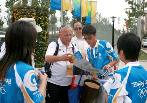 志愿者們熱烈歡迎盧思鋒的來訪,有的志愿者將自己平時工作用的奧運村地圖送給書記,希望他以后常來看望大家;有的贈送了自己總結(jié)整理的服務(wù)用語,展示自己的工作成果;有的還將在工作中獲贈的禮物,來自荷蘭的工藝品等贈送給了盧思鋒。盧書記對同學們的心意表示深深的感謝。由于工作不能脫崗,四號門的志愿者輪流前來接受慰問,在烈日下往返近四十分鐘。大家看到盧思鋒感到十分親切,表示自己將認真服務(wù),堅守崗位,總結(jié)經(jīng)驗,更好地為殘奧會服務(wù)。盧思鋒風趣幽默地鼓舞大家“苦不苦,想想站崗日當午,累不累,想想北京奧運會”。 他希望大家能夠在這個短暫的假期中快速成長,得到歷練。
