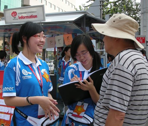 永定路站點位于奧運老山場館和五棵松場館之間,地處交通要道,站點就設在長峰假日酒店樓邊上,而酒店主要住的是中外記者。工作任務和壓力可想而知。材料系城市志愿者上崗后,以極大的服務熱情投入到志愿服務中去,他們不僅為市民提供各種咨詢服務、適時更新金牌榜信息、回收廢舊電池、便民打氣等工作,還積極開展豐富多彩的活動,從“奧運燈謎”、“填歌詞 唱奧運”、“成語接龍”、“雙語唱奧運”、“‘淚水 微笑’問卷調查”、“和平奧運,愛心中國”到為老人修鞋,教市民學手語,帶動市民開展全民“毽”身活動。深受中外游客和當地居民的歡迎和贊賞。