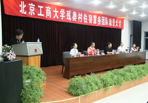 隨后,全體服務(wù)生在帶隊(duì)老師于沛帶領(lǐng)下,舉起右手,莊嚴(yán)宣誓:“我們要團(tuán)結(jié)一致、振奮精神、忠于職守、不負(fù)重托……”。這誓言表達(dá)著我們北工商服務(wù)生們奉獻(xiàn)殘奧的堅(jiān)定決心!