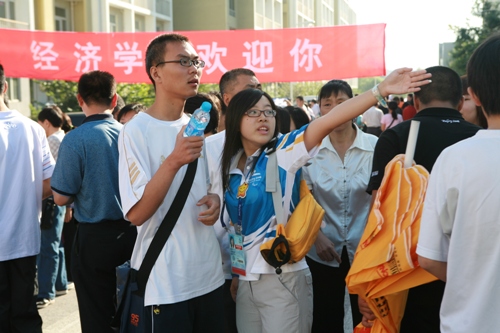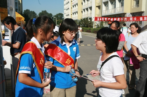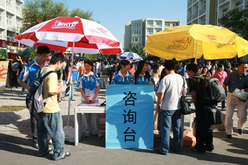 早上7點鐘,各部門和各學院準備就緒。在生活區廣場設立了新生接待咨詢處以方便新生報到、找到新宿舍;校學生資助中心設立“綠色通道”幫助新同學辦理申請助學金和貸款的有關手續;校學生會、校青志協、各院學生會和青志協專門安排學生引導員幫助新生及家長了解學校、搬運行李,從校門口到新生宿舍,實行“一條龍”服務;校財務處、教務處招生辦、學生處、保衛處設立了咨詢處。學校各部門分工合理,新生接待工作井然有序,安排到位,贏得了新生及家長的好評。