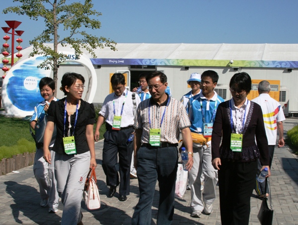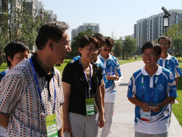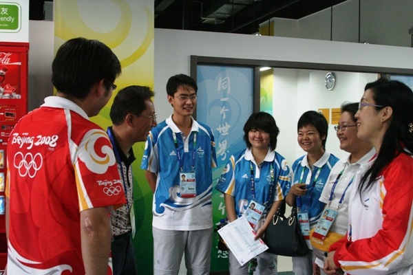 在居住區(qū)的超級居民服務中心,謝志華還看望了從交通業(yè)務口調到安保業(yè)務口的5名研究生志愿者。在所有服務崗位中,他們的工作條件最艱苦,謝志華希望這些研究生志愿者們能夠在艱苦的崗位上克服困難,在工作中磨練自己的意志,起到帶頭作用。得知志愿者吳韜在中秋節(jié)那天將要在殘奧村工作24小時,謝志華將月餅送給吳韜時說月餅代表了他的心意,并表揚他奉獻殘奧犧牲節(jié)假日的精神。最后,謝志華一行還看望了在三號門站崗的研究生志愿者唐楊斌,領導們對從奧運會期間一直在室外崗口服務的唐楊斌給予了高度評價,表示從他的身上能夠看到志愿者樂觀、堅持的高貴品質。