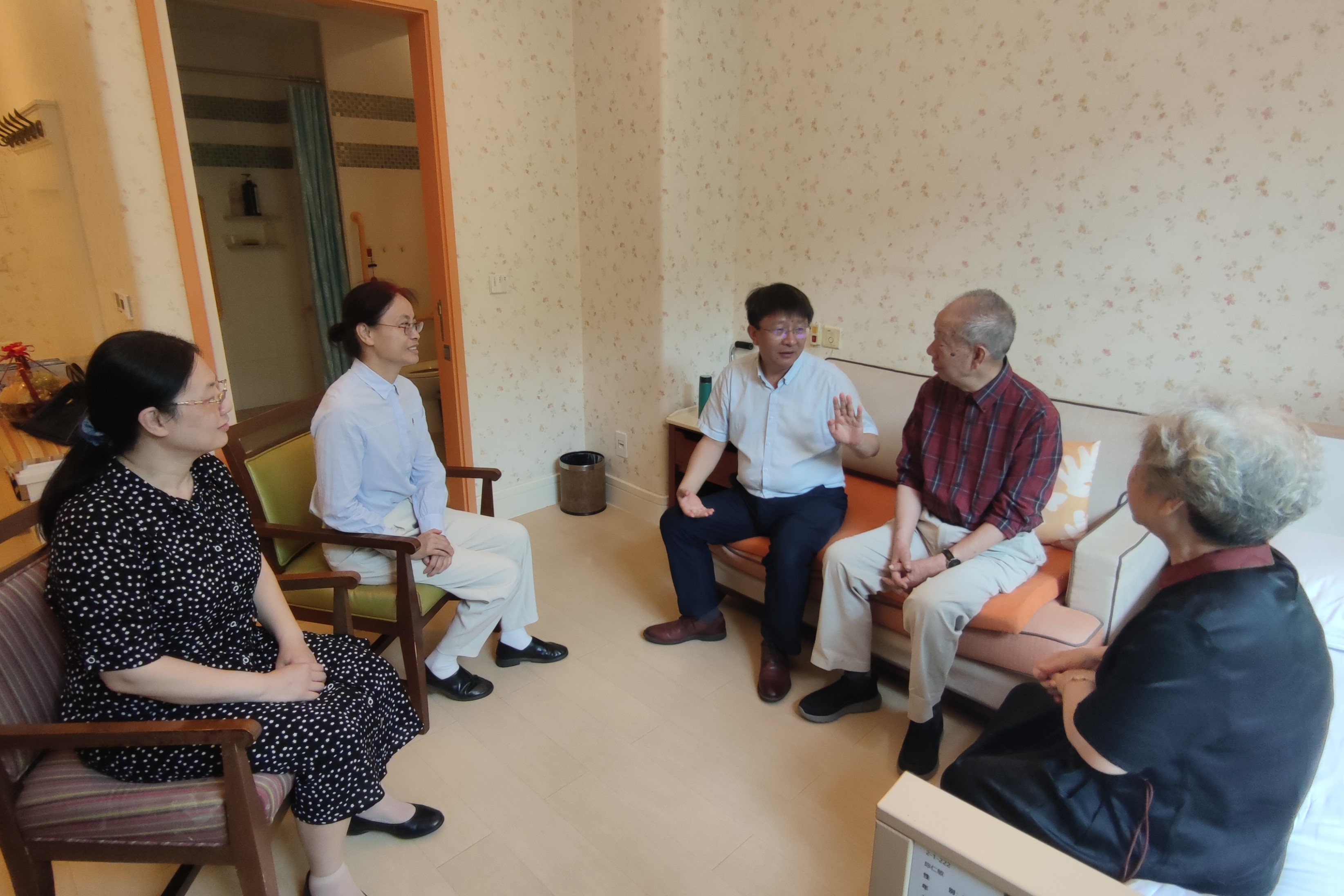 郭建華與陳仁敏親切交談,關切地詢問和了解老領導的生活起居和身體狀況,囑咐老領導要多保重身體,保持樂觀心態,安享幸福晚年。郭建華介紹了學校最新發展情況和取得的成績,悉心聽取了老領導對學校工作的意見和建議。他表示,學校的可持續發展離不開廣大離退休老同志幾十年的拼搏與奮斗,今天成績的取得與廣大離退休老同志打下的堅實基礎是分不開的。他代表學校黨委和行政由衷地感謝廣大離退休老同志在學校發展不同歷史階段所作出的貢獻,希望老同志繼續堅守立德樹人初心,擔當教書育人使命,在保重身體的同時,繼續發揮自身政治優勢、經驗優勢、威望優勢,一如既往地關心、支持學校的發展,為學校高水平研究型大學建設獻計獻策、發光發熱。陳仁敏感謝學校黨委一直以來的關心和愛護,對學校事業發展取得的成績感到由衷高興,表示將繼續關心和支持學校發展,同時祝愿學校在全力以赴推進高水平研究型大學建設的道路上不斷取得更大成績。