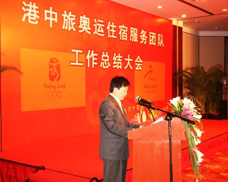 會(huì)議首先由香港中旅維景國(guó)際酒店管理有限公司北方區(qū)總經(jīng)理王樹森作奧運(yùn)住宿服務(wù)工作總結(jié),他向在座的嘉賓和領(lǐng)導(dǎo)以及所有港中旅集團(tuán)參與奧運(yùn)住宿服務(wù)的員工詳細(xì)的介紹了團(tuán)隊(duì)自組建開始,經(jīng)歷選拔、培訓(xùn)、拓荒、賽事服務(wù)直至殘奧服務(wù)工作圓滿和結(jié)束的各項(xiàng)工作情況,并的將工作中員工所展現(xiàn)出來的能吃苦、能戰(zhàn)斗、肯拼搏、勇奉獻(xiàn)的精神通過真實(shí)的事例呈現(xiàn)給大家,每每讀到動(dòng)情之處,王總的聲音幾經(jīng)哽咽,全場(chǎng)也響起熱烈的掌聲。