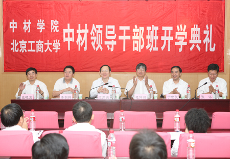 2008年9月22日上午,中國中材集團委托北京工商大學繼續教育學院舉辦的中國中材集團領導干部培訓班開學典禮在我校西區綜合樓一層隆重舉行。北京工商大學譚向勇校長、李朝鮮副校長與中國中材集團總經理譚仲明、黨委書記于世良、副總經理張海等出席了開學典禮。繼續教育學院院長張曉堂、高潤芝書記、副院長楊本順、劉萍副及40名學員參加了開學典禮。