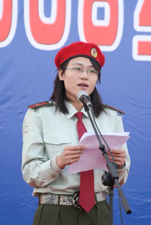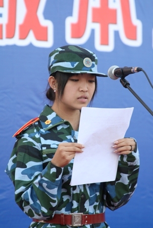 參訓學員男生連代表三連五班王宇卓和女生連代表八連六班宋雙發言,他們都表示要以飽滿的熱情、旺盛的斗志、頑強的毅力、威武的軍姿、恢弘的氣勢、積極的態度投身到軍訓中,決不辜負部隊首長、學校領導老師和父母的厚望,以大學生昂揚的青春風貌向部隊首長和學校領導匯報。