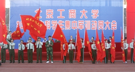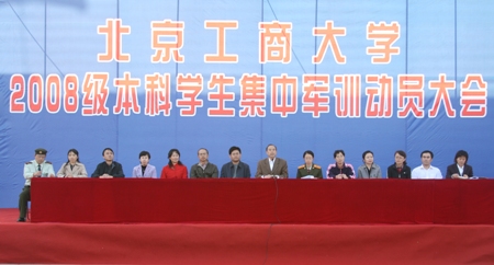 大會在雄壯嘹亮的中國人民解放軍軍歌中開始。黨委副書記盧思鋒給參訓學生做了軍訓動員。他強調,軍訓是大學生的必修課希望同學們通過為期12天的軍訓在思想認識、軍事技能、身體素質、組織紀律等各方面都有所提高。盧思鋒同志還提出了三點要求:一、要遵守紀律,增強組織觀念,以飽滿的政治熱情、積極的學習態度投身到軍事訓練中去;二、要具備不怕苦的精神,做到“流血流汗不流淚,掉皮掉肉不掉隊”,通過軍訓,磨練自己的意志,健壯自己的體魄;三、要和駐地官兵相互尊重、相互學習,服從命令聽指揮。他希望同學們弘揚解放軍的優良傳統,學習解放軍艱苦樸素的工作作風和吃苦耐勞的革命精神,并轉化為學習的動力,努力學習,早日成才,充分展示我北京工商大學學生的良好精神風貌;希望各帶隊老師切實負起責任,積極配合教官,深入軍訓第一線,深入到同學中去,帶領同學們共同圓滿地完成軍訓任務。