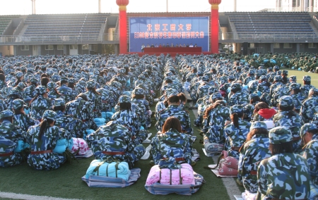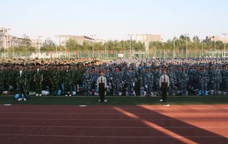 10月6日下午,我校2008級本科學生集中軍訓動員大會分別在良鄉校區和阜成路校區召開。校黨委副書記盧思鋒出席會議并講話。學生處處長兼武裝部部長、本次軍訓團團長董竹娟和各學院相關負責人出席了良鄉校區動員大會,大會由校團委副書記、軍訓團參謀長陶偉主持。材料系黨總支書記、軍訓團政委蔣洪瑞和相關院系負責人出席阜成路校區動員大會。各學院帶隊老師和軍訓團全體新生參加了動員大會。