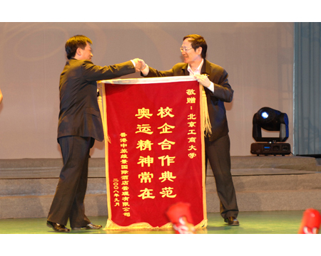 譚向勇校長接受港中旅北方區副總王樹森贈送的錦旗