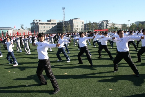 上學期末,學校恢復了工間操。本學期初,學校決定舉辦教職工第八套廣播操表演賽。一個月以來,各基層工會主席認真組織,各級黨政領導大力支持,廣大教師積極響應,全校上下都行動起來學習第八套廣播體操。很多教學單位克服白天老師課多、人無法聚齊的困難,選擇在晚上、在周末苦練;職能部門和教輔單位針對兩地辦公、人員分散的現狀,決定先看光盤以部門為單位小規模練習,再集中起來糾錯,統一動作。各基層單位不僅從資金上大力支持本項活動,廣大的中層干部還主動申請成為參賽隊伍的一員積極備戰;很多老師更是克服孩子小、家住得遠、課多、科研任務重等困難,盡最大努力參加賽前的練習。一次次的訓練,使教工們深深體會到積極開展廣播操活動,能起到舒展身體、放松身心、減輕壓力的良好作用。有的基層工會甚至還倡議本單位周二的集中一定在會前會中和會后做三遍廣播操。