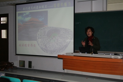 李教授以奧運項目內容為實例,結合計算機建模、仿真技術就什么是虛擬現實、什么是仿真以及虛擬現實領域的科學問題等內容進行了詳細分析和講解。講座中,李教授還現場為師生演示了她們科研團隊運用三維建模、視景仿真等虛擬現實手法制作的北京奧運會開閉幕式大型表演虛擬場景,受到師生們的歡迎。