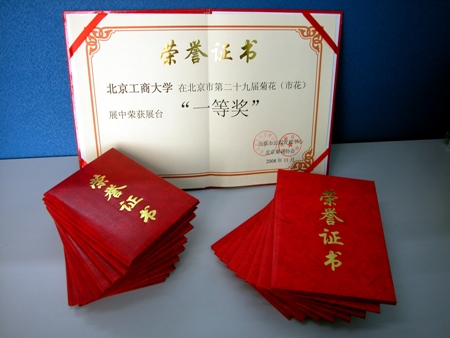 我校菊花栽培已有20多年歷史,栽培技術有獨到之處,連續(xù)14屆獲得北京高校菊花展第1名,20余次參加北京市菊花展,共獲得160多個獎項。還多次代表北京市出席全國菊展、全國花卉博覽會、世界花卉博覽會。91年在香港世界花鳥魚蟲博覽會上獲得金獎,99年昆明世博會獲得金、銀、銅獎牌6塊,為北京爭得了榮譽。