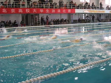 北京高校2008年冬季游泳錦標賽于11月29日在北京育英學校游泳館舉行,來自首都19所高校的300多名運動員參加了此次比賽。我校被評為“2008年北京高校游泳錦標賽”精神文明單位,教練董珂、楊君建均被評為優秀教練員,隊員沙莎、王一鳴、殷牧歌被評為優秀運動員。