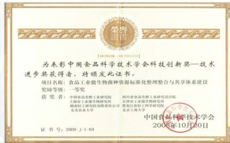 此外,我校參加的該項目獲得了中國食品科學技術學會科技創新獎—技術進步獎一等獎,課題負責人陳存社博士獲得獎勵證書。