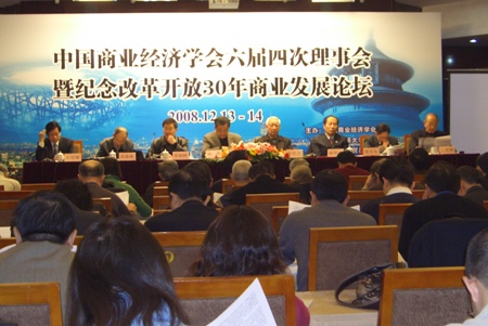 中國社科院財貿經濟研究所所長助理荊林波教授就“全球金融海嘯對經濟的影響”做了主題發言。高滌陳、徐從才、馬龍龍等專家學者先后發言,就我國商業改革開放30年中,流通業的改革的發展、農村流通體制、糧食流通體制、品牌發展、商業業態等主題進行了交流。我校洪濤教授作為中國商業經濟學會副秘書長就“農產品協議流通、流通產業的理論問題”作了大會發言。