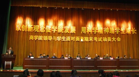 為進一步鞏固新商學(xué)院內(nèi)部的融合與穩(wěn)定,加強師生間的交流與探討,打造團結(jié)、和諧、優(yōu)秀的集體,商學(xué)院“以創(chuàng)新觀念促學(xué)院發(fā)展,用科學(xué)精神助學(xué)生成長——商學(xué)院領(lǐng)導(dǎo)與學(xué)生面對面暨期末考試動員大會”于