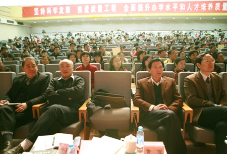 李朝鮮副校長作了題為《堅持科學發展,推進質量工程,全面提升辦學水平和人才培養質量》的主題報告;黃侃處長作了北京市質量工程報告;楊有紅、楊德勇、何明珂三位教授分別做了經驗介紹。畢孔彰發表講話;校長譚向勇最后作大會總結講話。