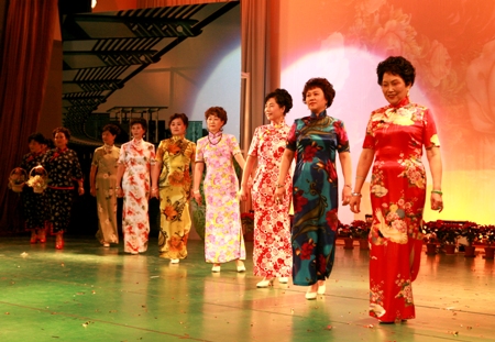 三十年的變遷,翻天覆地。在《改革開放三十年時裝表演》中,通過服裝、道具和情節的變化,并融入舞臺劇的元素,反映了改革開放三十年來,我國大學校園中師生穿著的變化,彰顯不同年代師生們的生活和精神風貌;透過8名女教師身穿的艷麗晚禮服,我們可以看到已經走進時代的中國人民的幸福生活;退休的老干部在夕陽紅音樂的伴奏下款款走來,向我們展示了她們豐富多彩的晚年生活。這個節目是由劉云等退休老干部和王小藝、潘潔等19位老師表演的。