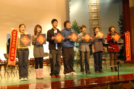 聯歡會上節目精彩紛呈,掀起一個一個高潮,引發一陣一陣歡呼,激起一片一片回應,不僅奉獻給全校師生了一臺影、視、聽的盛宴,而且展現出我校站在新的歷史起點上新的精神風貌。我們將每一個節目內容都用一個詞來表達,形成了09元旦聯歡會的十三個“關鍵詞”: