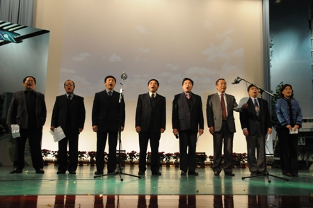 奮進的旋律激人拼搏,奮進的歌聲催人前行。一曲由合并院系負責人合唱的《我們走在大路上》唱出了合并后新院系領導們的心聲。 2008年我校進行的院系調整,為的是進一步整合學科體系,促進學校更快的發展。但是,目標不是一蹴而就的,還需要我們扎實不懈的努力。合并學院各位領導的歌聲讓我們感覺到他們底氣十足,務實將是對他們的第一要求。