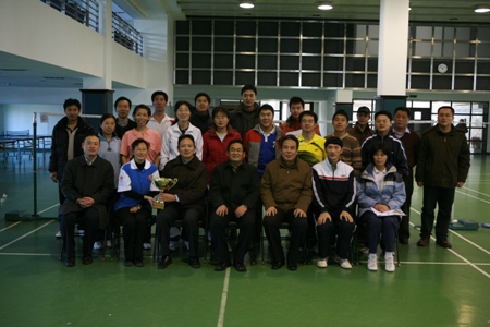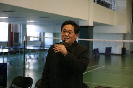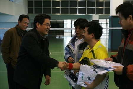 黨委副書記兼紀委書記張德玉發表了熱情洋溢的講話。他在講話中,感謝有這么多教工參與到羽毛球運動中,既鍛煉了身體,又保障了工作;感謝有這么多的干部支持并參與到羽毛球運動中,既獲得了好成績,又推動了單位的工作;感謝工會和羽毛球協會做了大量組織工作,既保證了比賽緊張有序進行,又鍛煉了組織大型活動的能力。他強調本次比賽是在北京成功舉辦奧運會、殘奧會,學校秋季運動會剛剛結束的情況下舉行的,為秋季的校園增添了一道亮麗風景。他希望,教工們既要賽出風格,也要賽出水平,不斷提高教工們的羽毛球水平。他祝愿每年舉行的教工羽毛球比賽不斷舉辦下去,形成優秀品牌,豐富教工們的業余生活,為營造校園的和諧氛圍做貢獻。