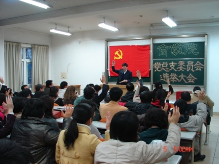 1月4日下午,新成立的商學院黨總支換屆選舉大會在西區313隆重召開。校黨委組織部張秋霞,商學院81名正式黨員及大多數預備黨員出席會議。大會主要內容是:選舉產生新一屆黨總支委員會,會議由龐毅主持。